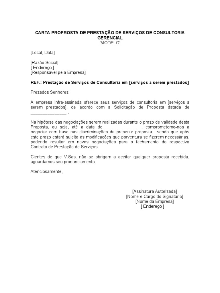Modelo de carta de oferecimento de serviços profissionais. PROPOSTA DE PRESTAÇÃO DE SERVIÇOS. 4 Exemplo de carta de candidatura para técnico de informática.